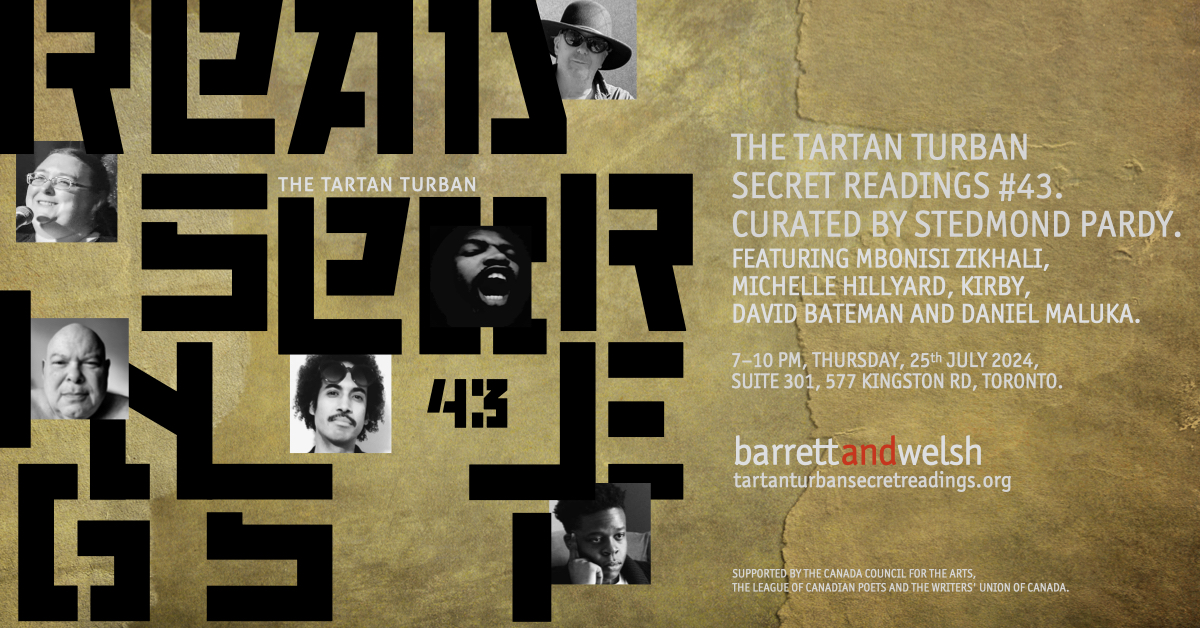 The Tartan Turban Secret Readings are variously supported by the Canada Council for the Arts, the League of Canadian Poets and The Writers’ Union of Canada.